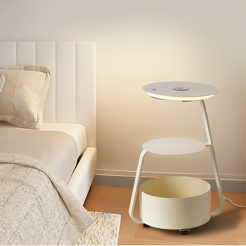 The Floor Lamp with Integrated Wireless Charging Bedside Table combines sleek design with functionality, featuring a built-in wireless charger and stylish lighting in one convenient unit.